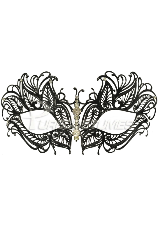 Mystique Winged Venetian Mask (Black) features a gorgeous laser-cut leaf design with rhinestones kissed down its center and a delicate ribbon tie. You’ll look utterly enchanting in this lovely mask.