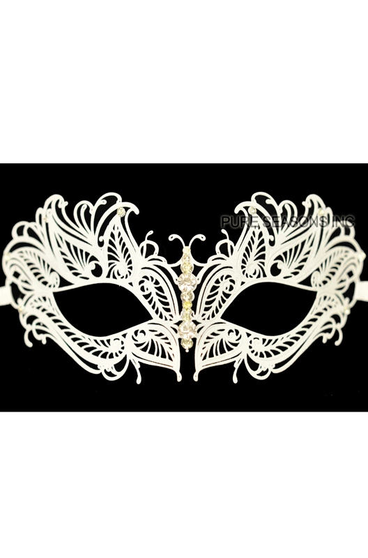 Mystique Winged Venetian Mask (White) features an intricate laser-cut design embellished with clear rhinestones for a look that is demure, yet stylish. Turn heads at your masquerade event with this stunning masquerade mask!