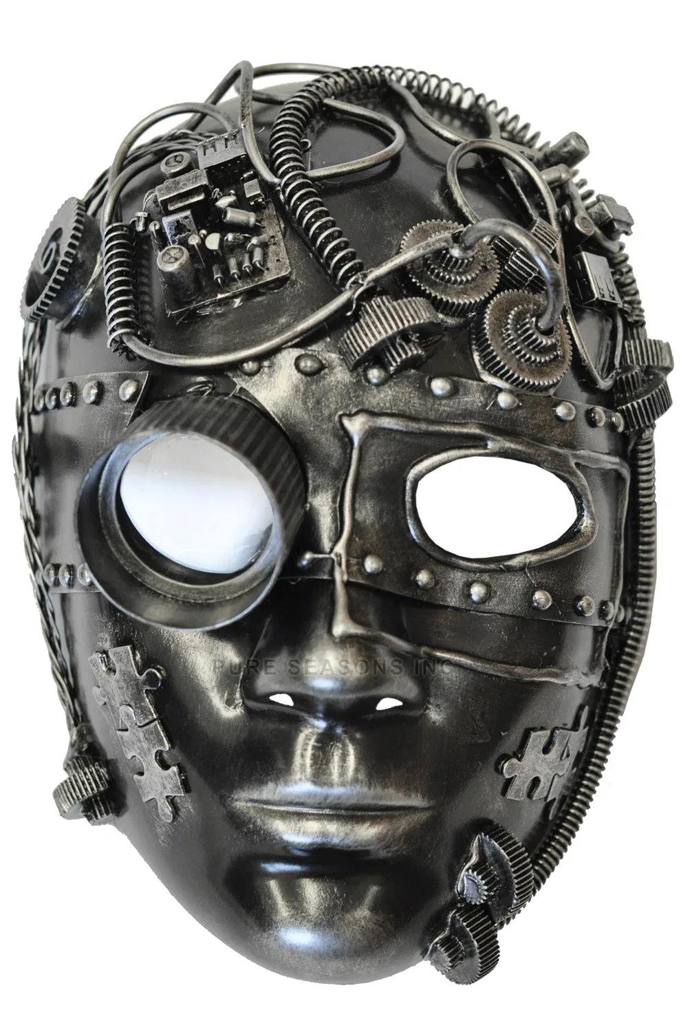 Peculiar indeed! This unique steampunk mask is the perfect disguise for a science-fiction fan like yourself. Inspired by the time traveling tales of the early 1900s, this masquerade mask will inspire your imagination. Featuring an antiqued silver-colored mask with a wild combination of gears, pipes, and studs, this steampunk accessory will make your outfit look absolutely incredible! Pair this masquerade disguise with your steampunk costume and prepare for your next adventure!