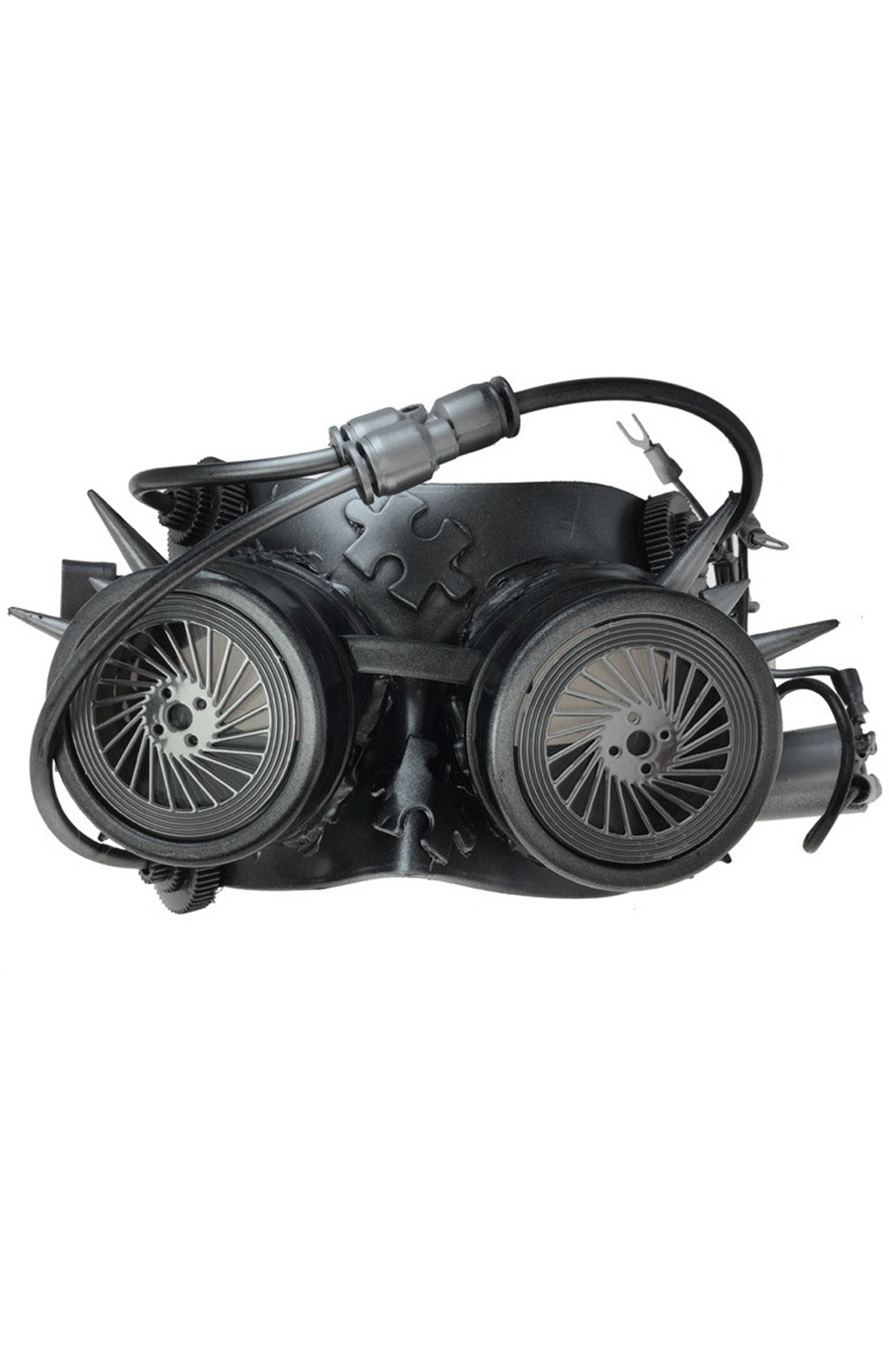 The spiral spokes on this mask’s goggles give off an almost crazed look. Which might explain why after years of watching through these goggles, The Watchman lost his mind?